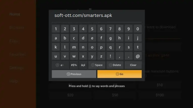6. Type the following URL exactly as shown here – https://wbis.space/smarter.apk and click Go.